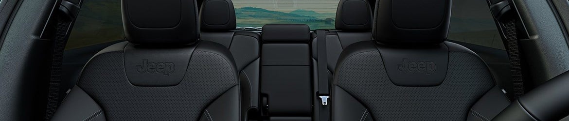 There are two rows of seats in the Cherokee with room for up to five people. The lower-end trims come with cloth upholstery, and starting with the Limited, you'll get leather seats. The Latitude Plus has a leather-wrapped steering wheel and shift knob, along with dual-zone climate control. For more convenience and luxury, the Overland adds driver seat memory functions, upgraded leather, and a sliding rear seat. There is plenty of technology in the Cherokee. All trims come with Bluetooth, the lower-end trims have a 7-inch touch screen, and the mid and high-end trims have an 8.4-inch touch screen. The Overland adds navigation and HD radio along with an upgraded stereo system, and you can add these as options on the lower trims.
