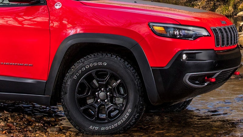 The six trim levels for the Cherokee start with the base level Latitude. This comes with 17-inch wheels, xenon headlights, and it has heated mirrors on the side. The Latitude Plus adds some upgraded convenience features in the cabin and the option for a power liftgate. The Altitude trim level provide a mysterious exterior look with blacked-out details and 18-inch gloss black aluminum wheels. Step up to the Limited and the power liftgate comes standard, and you'll also get 18-inch alloy wheels. The Overland is the top-level trim and comes with unique wheels, body-colored exterior trim elements, and cornering lights. The Trailhawk is the off-road themed model and comes with the advanced all-wheel-drive system, wider 17-inch wheels, and extras such as tow hooks, skid plates, and unique exterior trim elements.