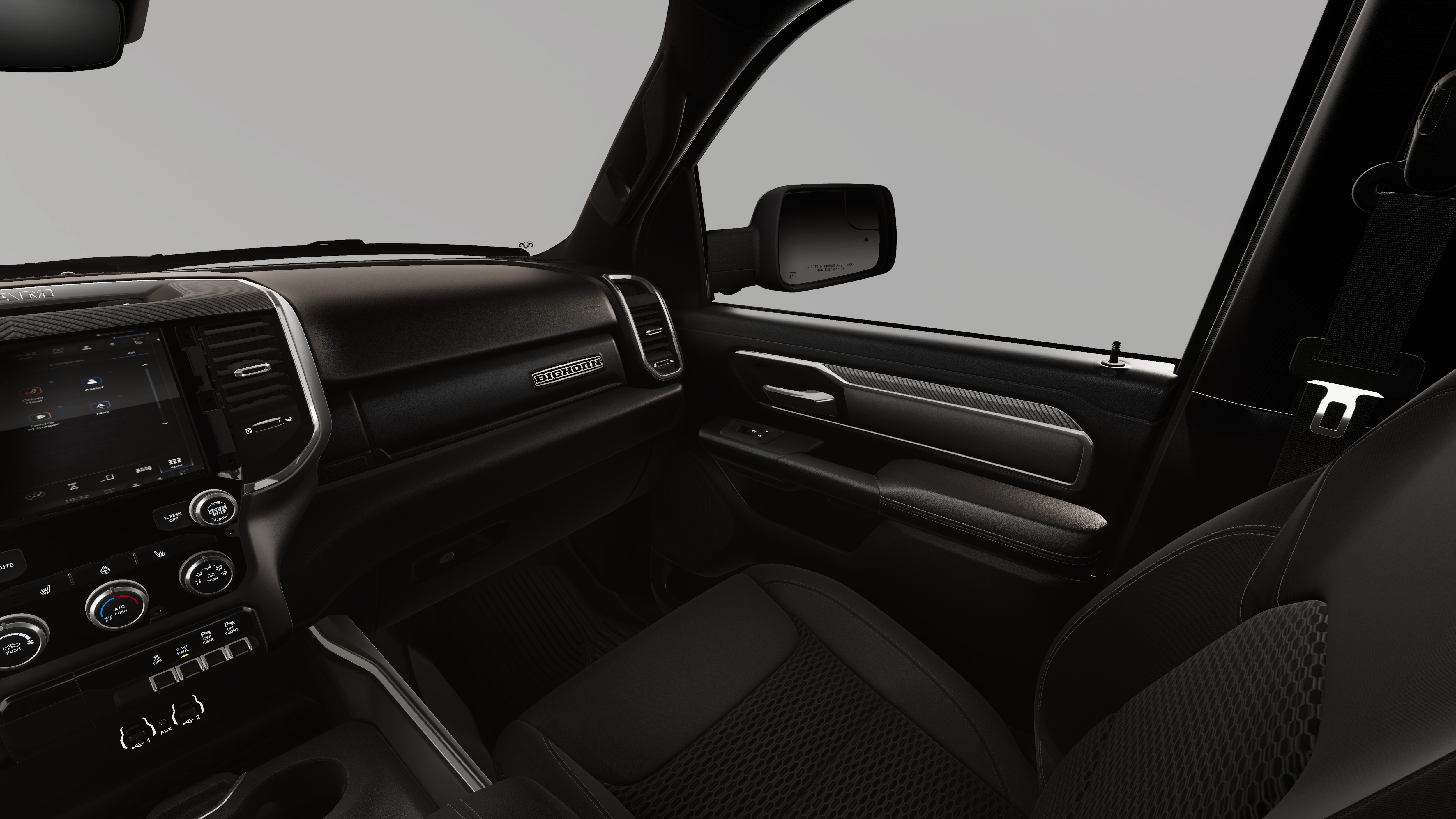 SPORT APPEARANCE PACKAGE -inc: Grille Surround 1 Body Color Texture 1 Black, Body Color Tailgate Handle, Black Interior Accents, Body Color Front Bumper, Body Color Door Handles, Body Color Rear Bumper w/Step Pads, QUICK ORDER PACKAGE 27Z BIG HORN -inc: Engine: 5.7L V8 HEMI MDS VVT eTorque, Transmission: 8-Speed Automatic (8HP75) , , TRI-FOLD TONNEAU COVER, TRANSMISSION: 8-SPEED AUTOMATIC (8HP75), MYFLEXCARE SERVICE PLAN, MOPAR FRONT & REAR RUBBER FLOOR MATS, ENGINE: 5.7L V8 HEMI MDS VVT ETORQUE -inc: Active Noise Control System, Heavy Duty Engine Cooling, Passive Tuned Mass Damper, GVWR: 7,100 lbs, Dual Rear Exhaust w/Bright Tips, G/T Exhaust, 18" Aluminum Spare Wheel, BRIGHT WHITE CLEARCOAT, BIG HORN LEVEL 1 EQUIPMENT GROUP -inc: SiriusXM Radio Service, Rear Window Defroster, Rear View Auto Dim Mirror, Power Adjustable Pedals, Leather Wrapped Steering Wheel, Rear Power Sliding Window, Rear Dome w/On/Off Switch Lamp, Glove Box Lamp, Auto Power-Folding Mirrors, Auto Dim Exterior Driver Mirror, Heated Front Seats, Heated Steering Wheel, Black Premium Power Mirrors, SiriusXM Satellite Radio, 400W Inverter, Exterior Mirrors w/Supplemental Signals, Steering Wheel Mounted Audio Controls, Exterior Mirrors Courtesy Lamps, Body Color Fender Flares, 115V Auxiliary Power Outlet, Universal Garage Door Opener, 2nd Row In Floor Storage Bins, Sun Visors w/Illuminated Vanity Mirrors.