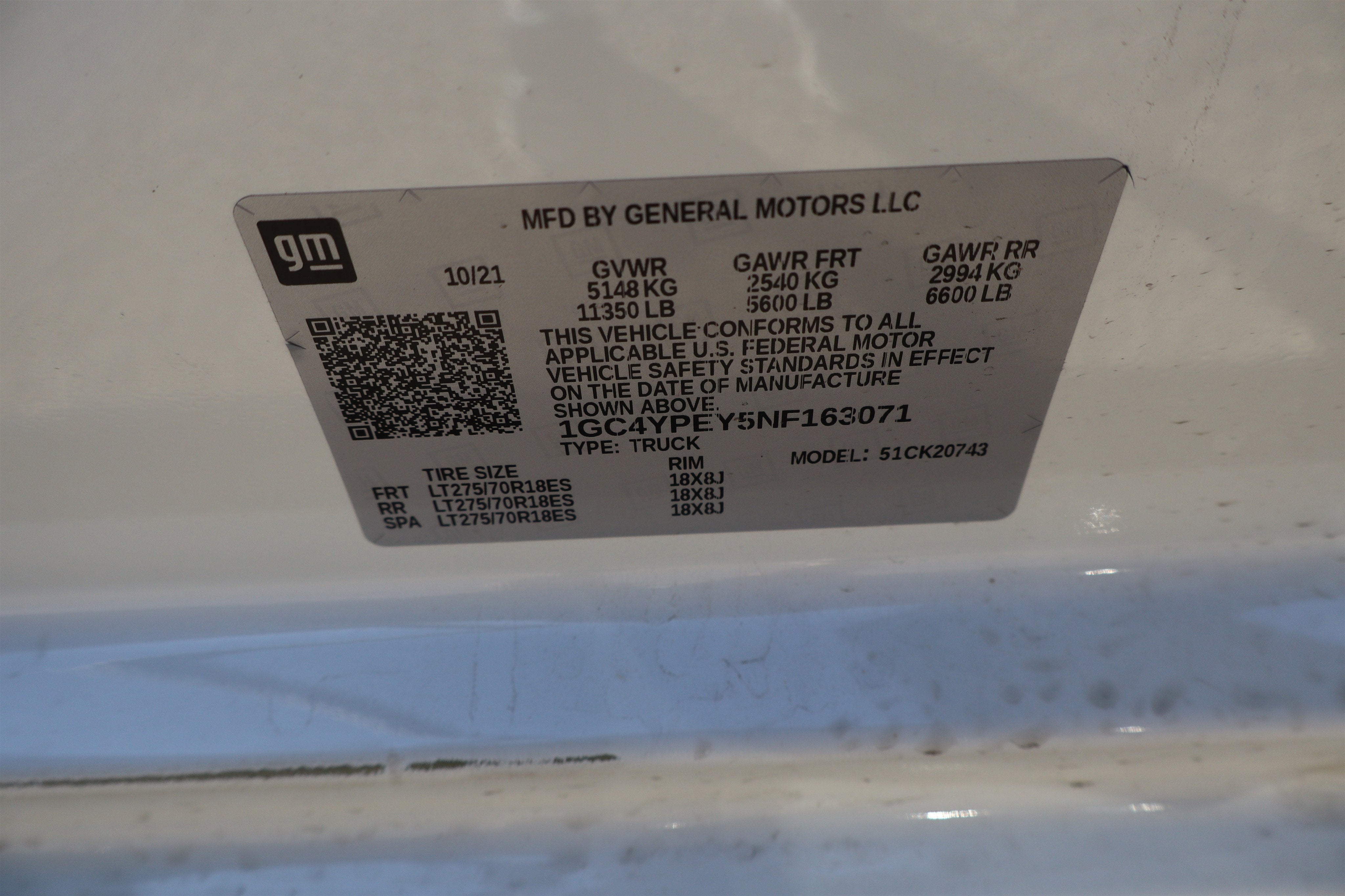 - Tire, spare LT275/70R18 all-terrain, blackwall (Included and only available with (QF6) LT275/70R18E all-terrain, blackwall tires, (QG3) LT275/70R18 mud-terrain, blackwall tires or (QF9) LT275/65R20 all-terrain, blackwall tires with (E63) Durabed, pickup bed. Available to order when (ZW9) pickup bed delete and (QF6) LT275/70R18E all-terrain, blackwall tires are ordered.)