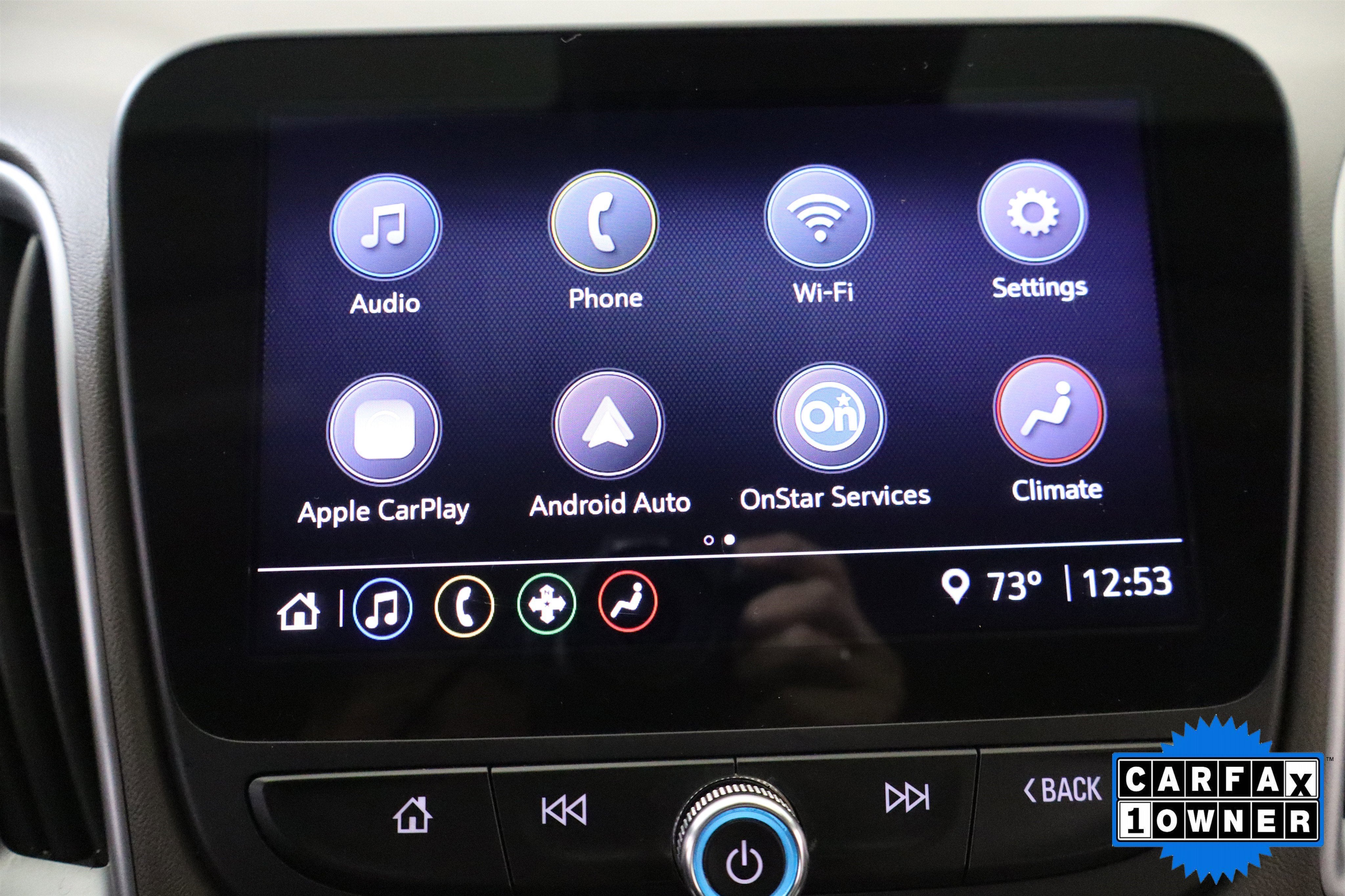- Audio system, Chevrolet Infotainment 3 system, 8" diagonal color touchscreen, AM/FM stereo. Additional features for compatible phones include: Bluetooth® audio streaming for 2 active devices, voice command pass-through to phone, Apple CarPlay and Android Auto capable.